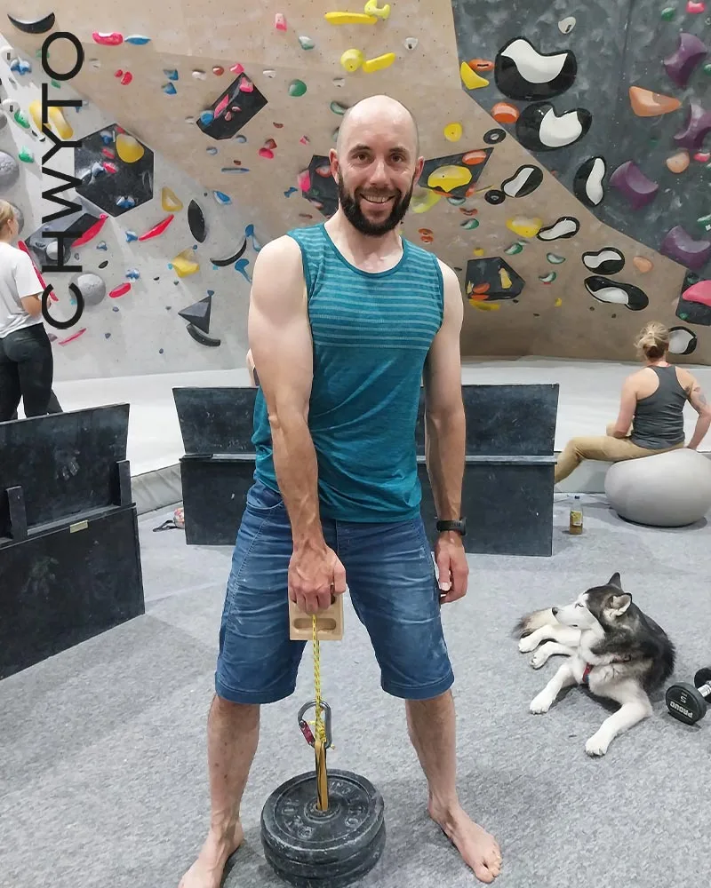 I only adjust the weight, which keeps the workout smooth and eliminates unnecessary breaks. I mainly focus on finger strength, forearms, and rotation – things that actually transfer to climbing.