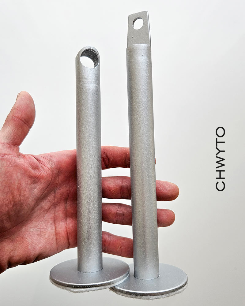 The image shows the previous version of the loading pin (the longer model) designed for lighter training. For comparison, it features 1.2 mm wall thickness and weighs 208 g.